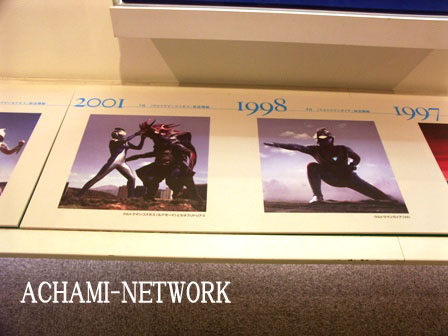 1963年4月に円谷英二監督が、円谷プロダクションの前身である円谷特技プロダクションを設立した時にはじまり、「ウルトラQ」「ウルトラマン」「ウルトラセブン」等のウルトラの世界が年表になって紹介され、2006年の最新作「ウルトラマンメビウス」までを振り返る事ができるコーナーになっていました。 |